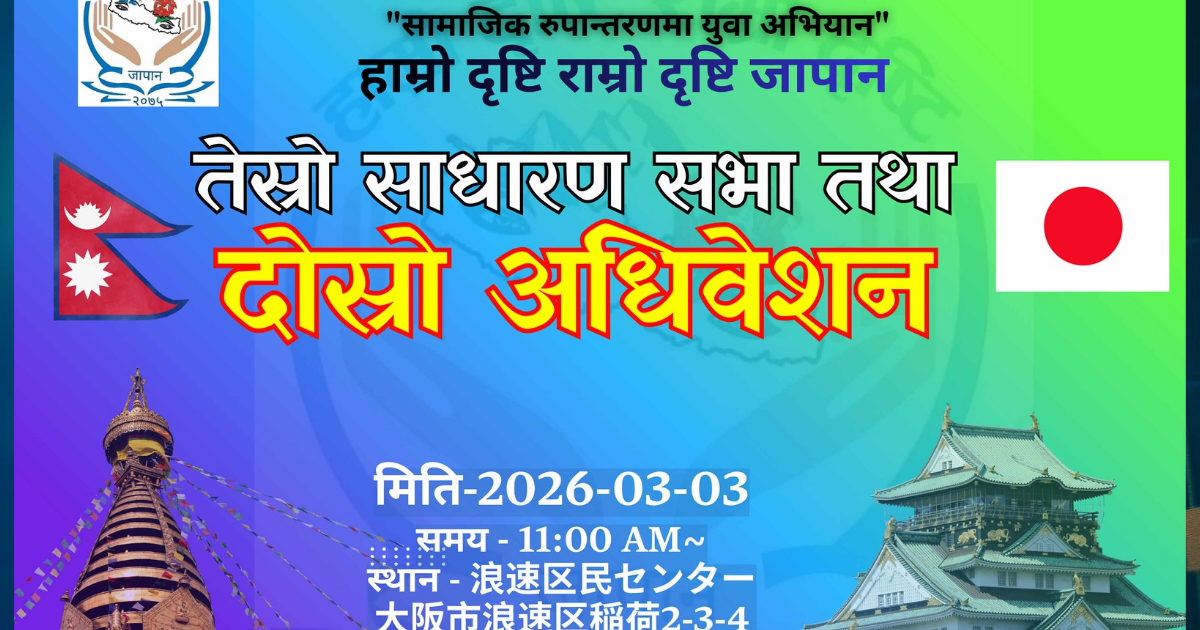 जापानको चिबा प्रान्तस्थित नराशिनो सिटीमा एक नेपाली युवकको हत्या भएको छ। हत्या भएका व्यक्ति म्याग्दी घर भई हाल पोखरा बस्ने २१ वर्षका बादल छन्त्याल हुन्। प्राप्त विवरण अनुसार बादललाई उनकी जापानी प्रेमिक[...]