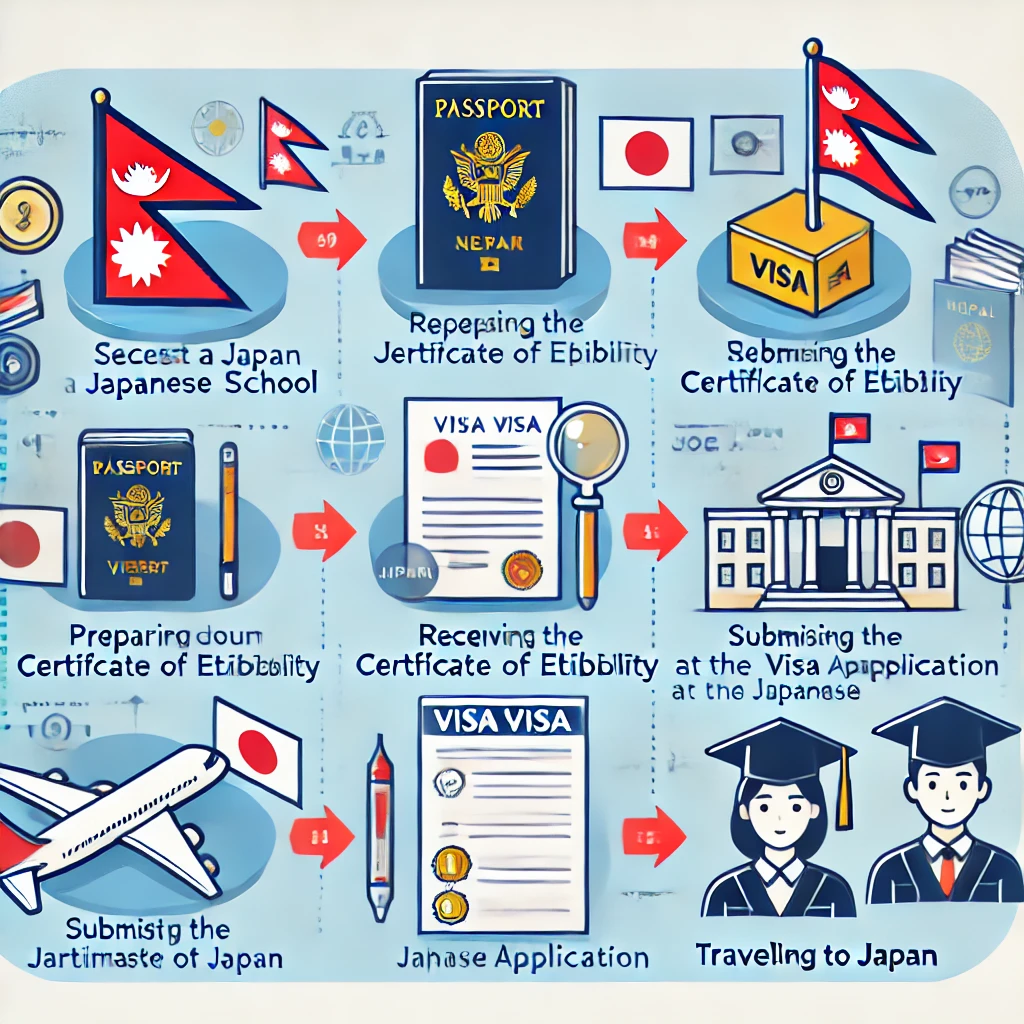 नेपालबाट जापानमा विद्यार्थी भिसा प्रक्रियालाई सहज बनाउन, निम्न चरणहरू पालन गर्नुपर्छ: